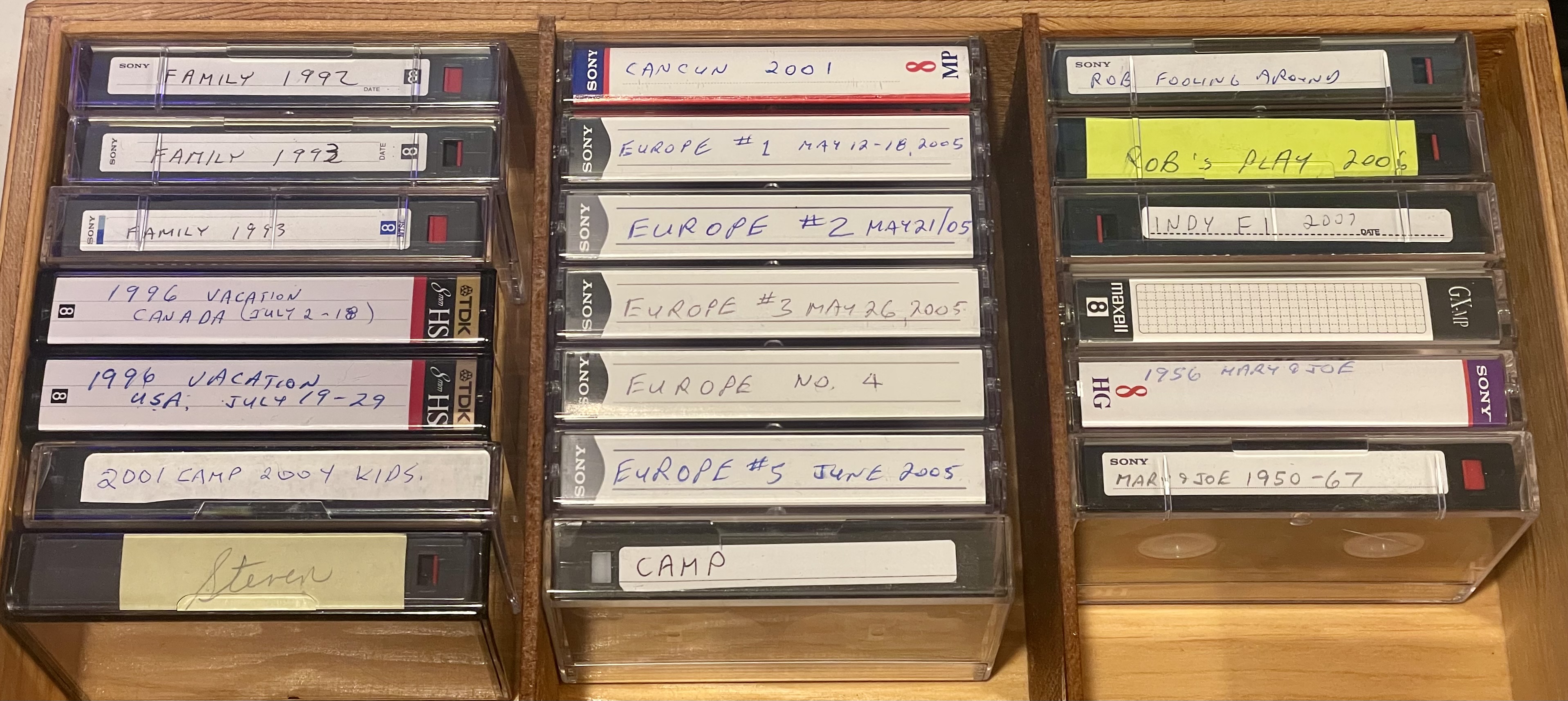 My family has a collection of 20 home videos recorded in the 1990s and 2000s on Video8 tapes. Video8 is 1980s technology that used magnetic video cassettes to record analog video and audio signals. I’m glad we have so many home videos, but unfortunately, these tapes are highly prone to disintegration and can degrade after 10–20 years. They are also difficult to watch using modern televisions, which often omit composite inputs. So, I began the project of archiving these tapes.